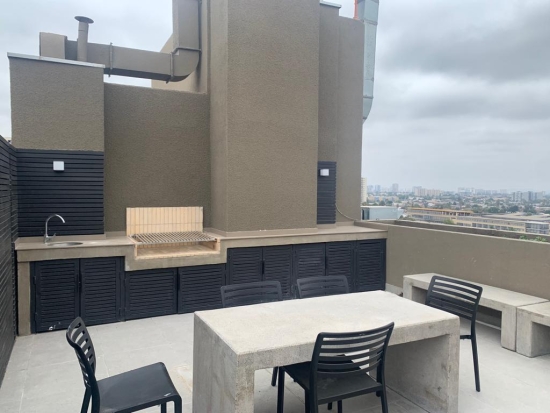 Un Dormitorio, Cocina Americana amoblada moderna empotrada al muro, Equipada, living comedor cómodo amplio Luminoso, Dormitorio con baño en suite, closets. Terraza.