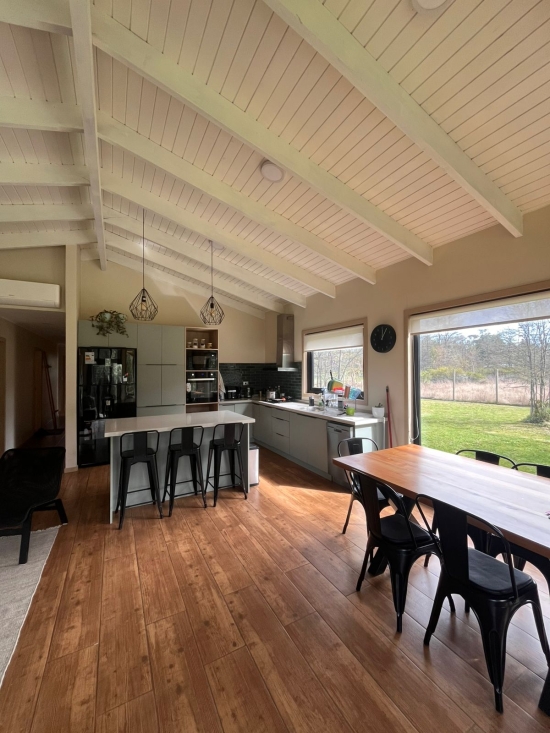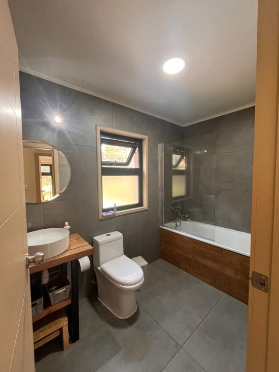 Vendo propiedad principal, mas cabaña, la casa principal cuenta con sector de lavandería, terraza, aire acondicionado y bosca. Mientras que a cabaña cuenta con habitación matrimonial, un baño, cocina americana, alacena, living y tiene bosca instalada. El patio cuenta con jardín, bodega pequeña, sector para guardar leña, espacio techado para gimnasio. La propiedad se encuentra ubicada en una parcelación cerrada con acceso por portón eléctrico, ademas de contar con agua de pozo para los habitantes de la parcelación. La propiedad en si cuenta con acceso con portón eléctrico tambien. Es una parcelación tranquila, con muchas áreas verdes, y se encuentra ubicada aproximadamente a 15 min en vehículo de el centro de Frutillar.