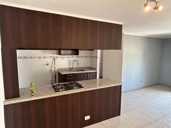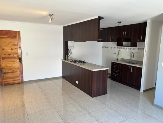 Excelente Departamento 58 m2 nuevo amplio y luminoso, Departamento 3 dormitorios, 1 baño, living-comedor, cocina americana amoblada, logia, 4° piso, estacionamiento visita, cuenta con aire acondicionado en dos dormitorios y living comedor, locomoción, Colegios, Cesfam, Feria