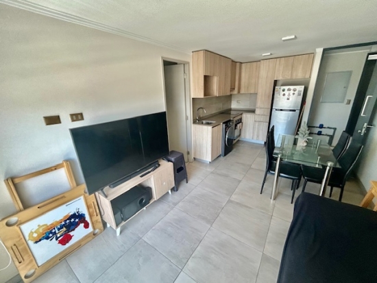 Un Dormitorio, Cocina Americana amoblada moderna empotrada al muro, Equipada, living comedor cómodo amplio Luminoso, Dormitorio con baño en suite, closets. Terraza.